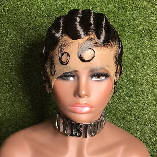 Customized Wig 13x4 Spit Short Finger Wave Wig Human Hair Wig For Women Short Ocean Wave Wig Pride Wave Lace Front Wig Short Pixie Wigs for Woman Natural Color