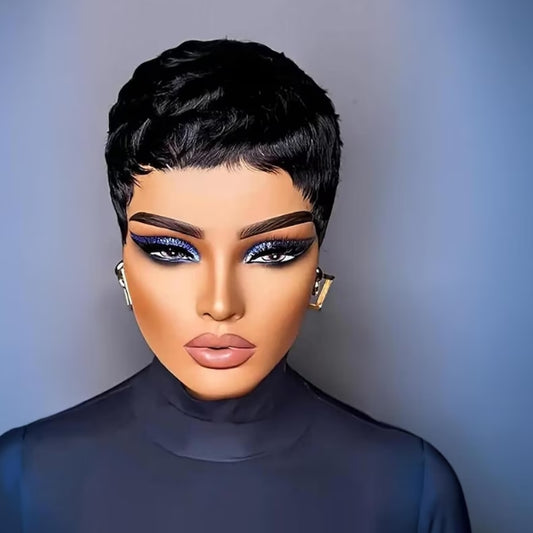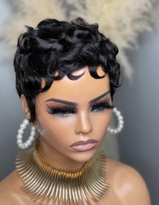 Pixie Cut Human Hair Wig Short Pixie Cut Wigs for Black Women Short Layered Curly Wigs Glueless Pixie Wig Brazilian Virgin Human Hair Wigs Short Curly Wigs For Women