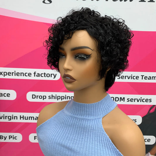 Pixie Cut Curly Wigs Human Hair Short Curly Pixie Cut Wigs For Black Women Machine Made Wigs Glueless Wig Pixie Short Curly Wigs 180% Density