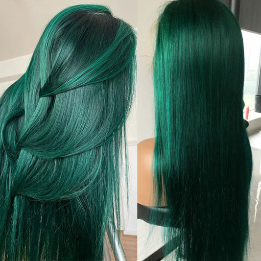 Customized Wig Highlight Emerald Green Colored 180% Bone Straight 13x4 Lace Frontal Wigs Human Hair Pre Plucked 4x4 Closure Wigs For Women