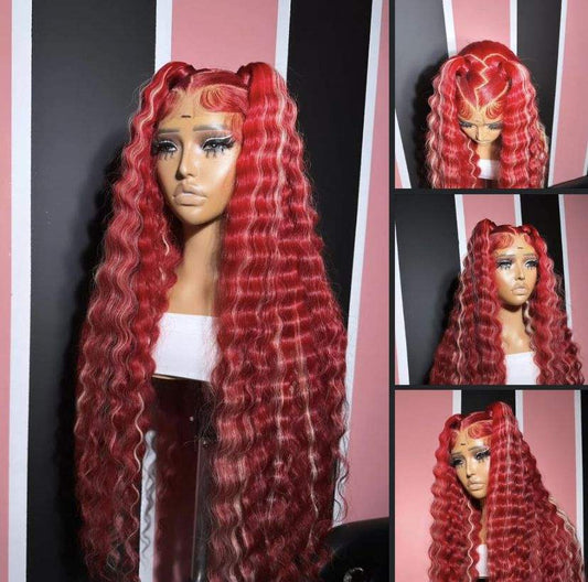 Show Real Loose Deep Wave Red Dark Red Ombre Highlight 13x4 And 4x4 Lace Pre plucked Baby Hair Vietnamese Human hair HD Lace Bleached Knots Glueless Wigs Human Hair Front Or Closure Wigs