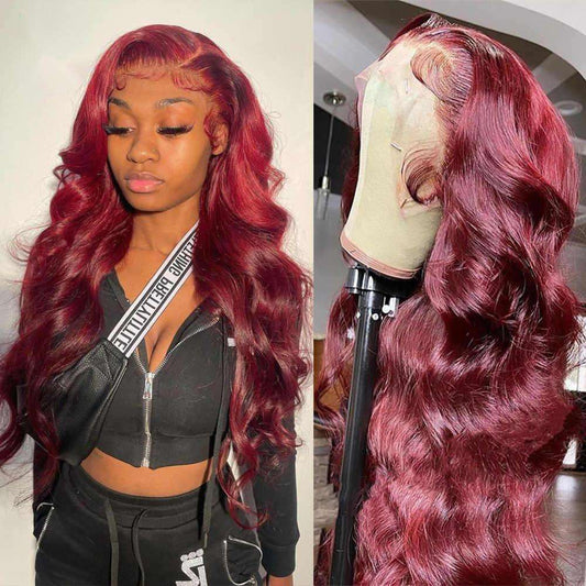 Show Real Wholesale Dark 99J Burgundy Pre-Plucked 13X4 And 4X4 HD Lace Frontal Closure Wig Body Wave13X6 Red Lace Front Human Hair Colored Wigs For Black Women