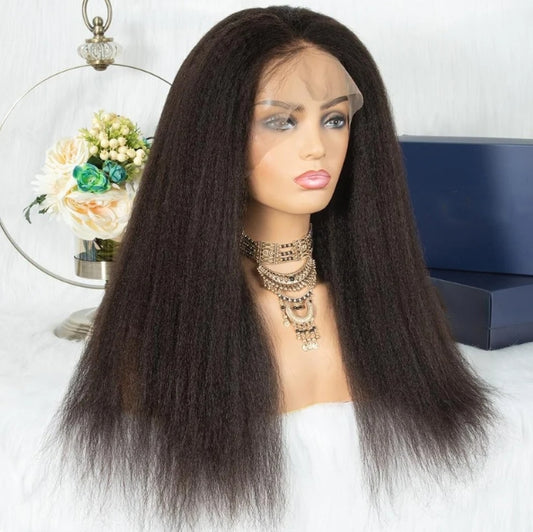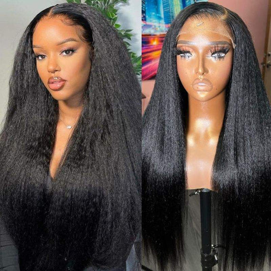 ShowReal Kinky Straight Lace Front Wigs Human Hair 13x4 Transparent Lace Front Wig Human Hair With Pre Plucked 180% Density Yaki Straight Human Hair Wig