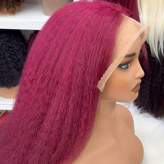 Customized Wig Purple Color Kinky Straight Lace Front Wigs Human Hair 13x4 Transparent Lace Front Wig Human Hair With Pre Plucked 180% Density Yaki Straight