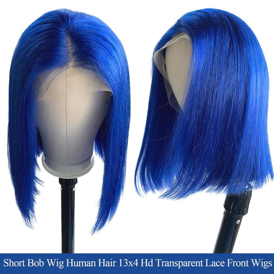 Customized Wig Blue Bob Lace Front Wigs Human Hair 180% Density 13x4 HD Lace Front Bob Wigs Human Hair Wig Pre Plucked with Baby Hair Wear and Go Straight Short Bob Wig Glueless Wigs Pre Cut For Women