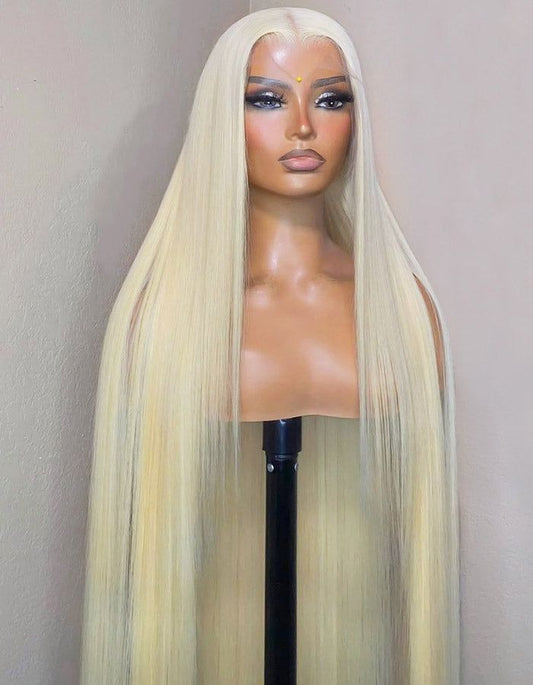 ShowReal 13x4 And 5x5 HD Transparent Lace Frontal 613 Blonde Color Straihgt Pre-Plucked Pre-Bleached Virgin Human Hair Wig For Woman Daily Party Use