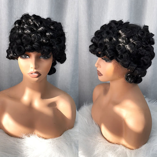 Pixie Cut Curly Wigs Human Hair Short Curly Pixie Cut Wigs For Black Women Machine Made Wigs Glueless Wig Pixie Short Curly Wigs 180% Density