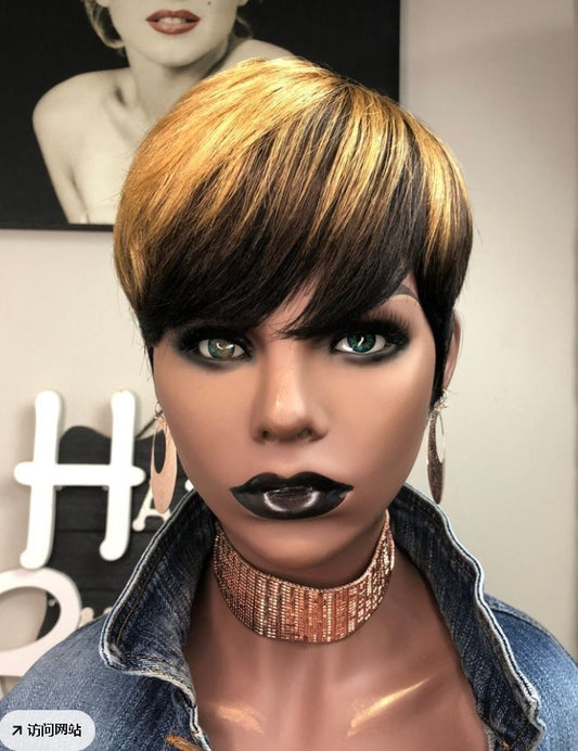 Showreal 1B/4/27 Ombre Blonde Color Pixie Cut for Women Blonde Pixie Cut Wig Brazilian Virgin Human Hair Short Striaght Wigs 180% Density Gluless Wig (0502-1B/4/27)