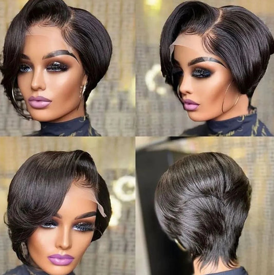ShowReal Pixie Cut Wigs Human Hair 13x4 Short Pixie Cut Lace Front Wig for Women Black Pixie Cut Transparent Frontal Wig Layered Straight Hair 180% Density