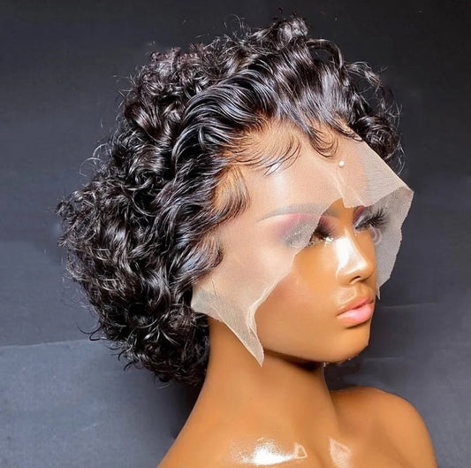 Customized Wig 13x4 Spit Short Finger Wave Wig Human Hair Wig For Women Short Ocean Wave Wig Pride Wave Lace Front Wig Short Pixie Wigs for Woman Natural Color