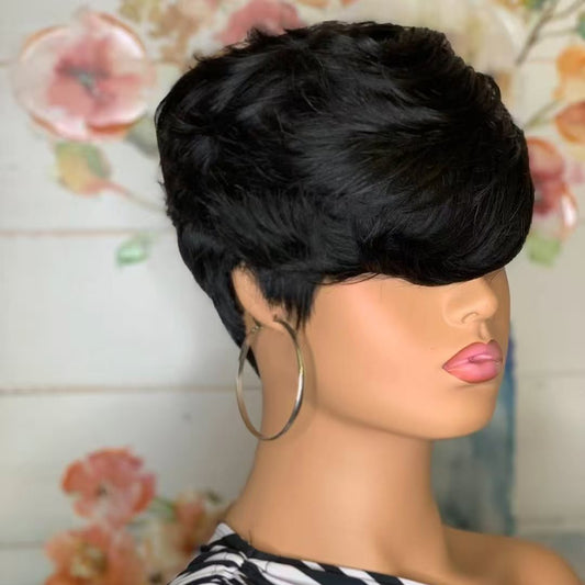 ShowReal Short Pixie Cut Wig Brazilian Virgin Human Hair With Bangs Full Machine Ready To Go Glueless Wig(0516-1B)