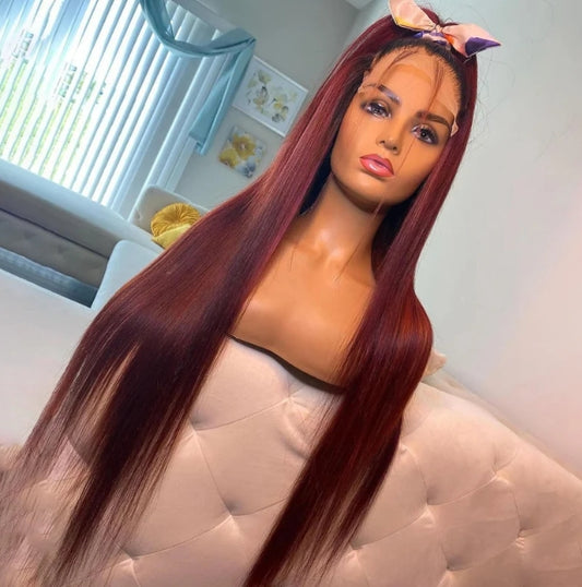 ShowReal 99j Burgundy 13x4 HD Lace Frontal Wig Bone Straight Lace Front Wigs 180% Density Brazilian Human Hair Wigs For Women